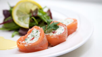 Ingrédients pour 4 personnes 200 gr de saumon fumé300 gr de fromage blanc 30 gr de crème fraiche 1 concombre AnethSelPoivre blancCitron Préparation : 1- Mélangez bien le fromage blanc avec la crème…